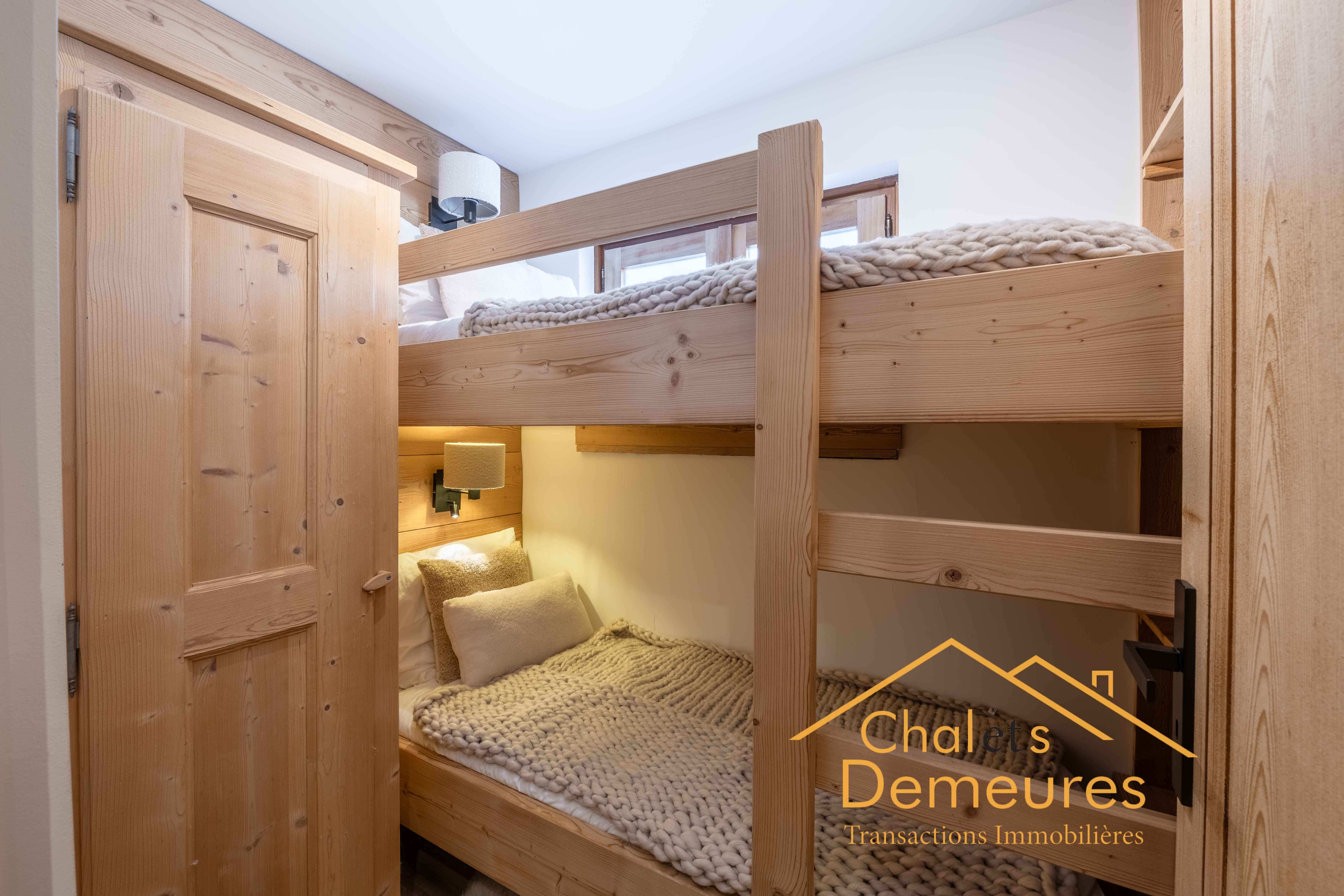 À proximité du départ du télécabine du Jaillet, bénéficiant d'un environnement calme avec une vue panoramique sur les Massifs du Mont d'Arbois et Rochebrune, Magnifique appartement T2 + cabine de 37,52 m2 au 1er étage avec ascenseur entièrement rénové avec gout, Cuisine ouverte sur un séjour double avec coin cheminée et accès balcon, spacieuse chambre avec rangement, coin cabine avec lits superposés distribués par une salle d'eau avec toilette, cave en sous sol. Plus d'informations.