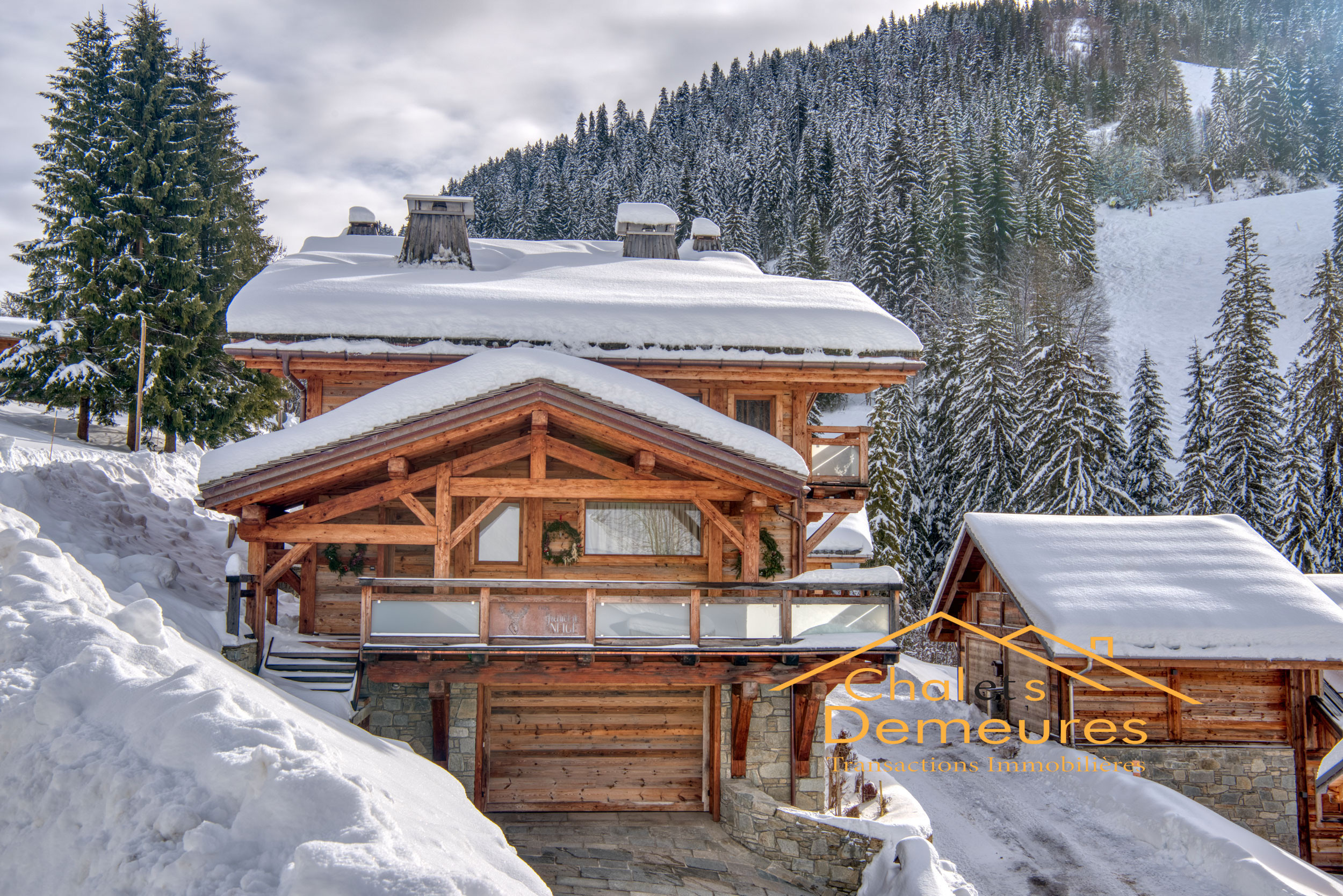 Ski In, Ski Out, au pied du domaine skiable "Les Portes du Mont Blanc" bénéficiant d'une vue panoramique face aux massifs à vous couper le souffle, Magnifique chalet de 274 m2 habitables, 323 m2 utiles de 2020, authenticité et atmosphère d'antan sont au rendez vous, élevé sur 3 niveaux et vous apportant le confort d'une cuisine équipée ouverte sur un vaste séjour double en cathédrale avec poêle à bois, 5 chambres en suite dont 1 master plus un appartement T1 de service indépendant, sauna, jacuzzi, salon cinéma et garage avec rampe chauffante finissent de compléter ce bien d'exception. Plus d'information.