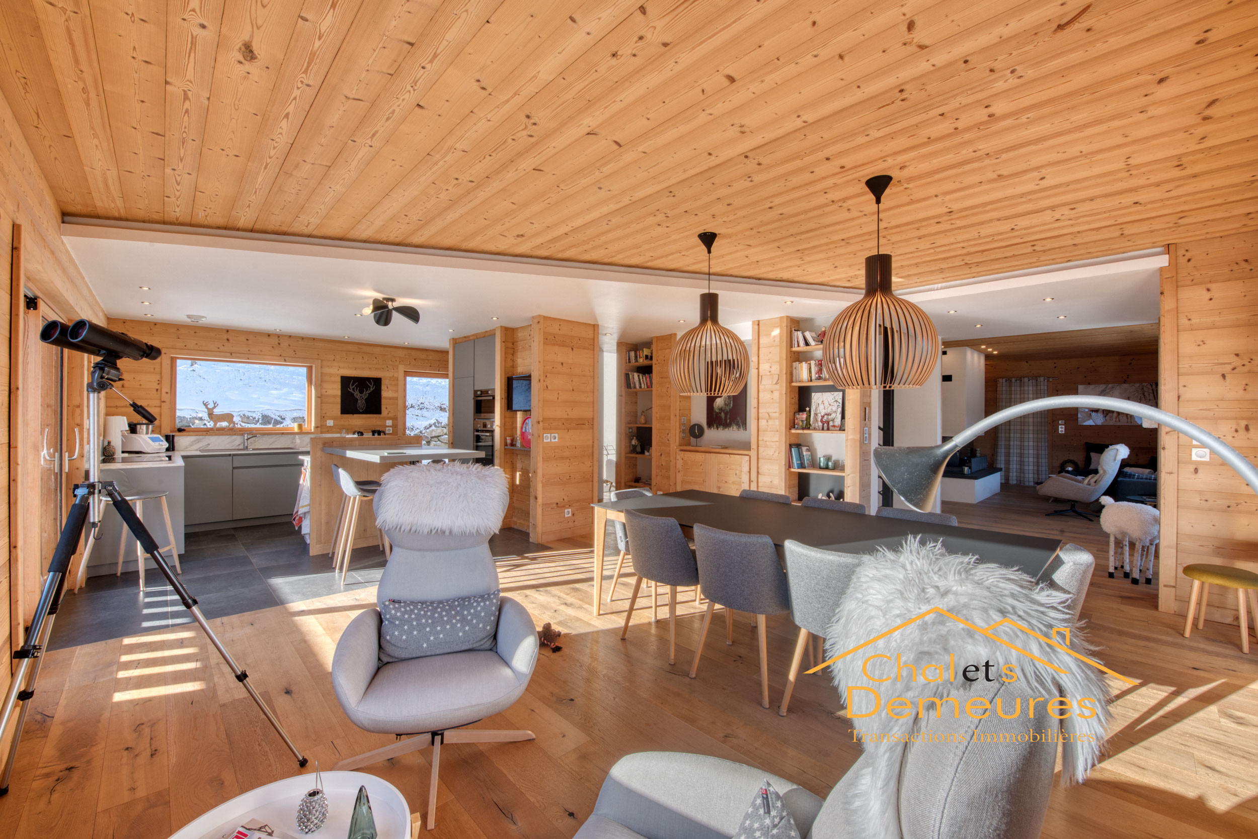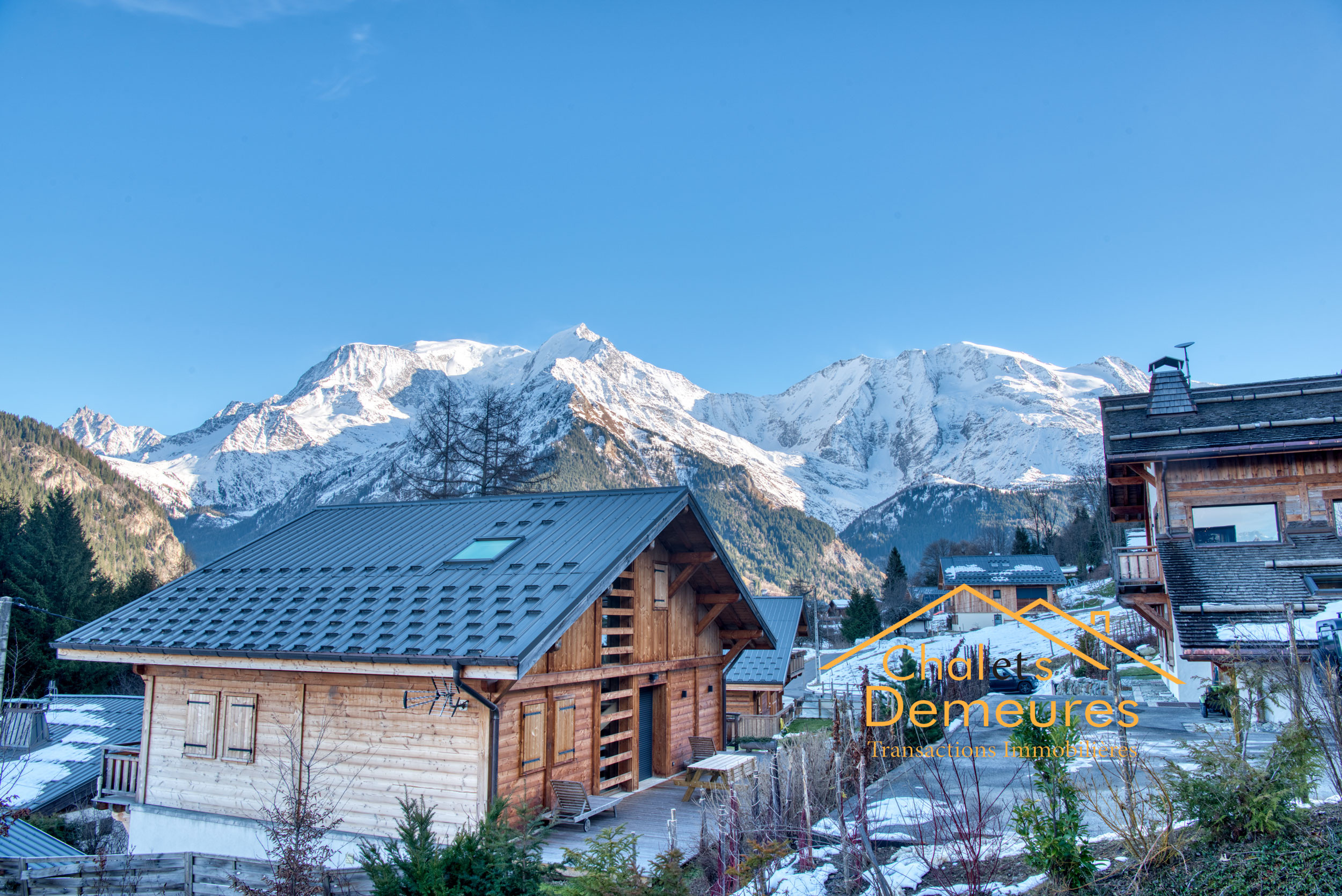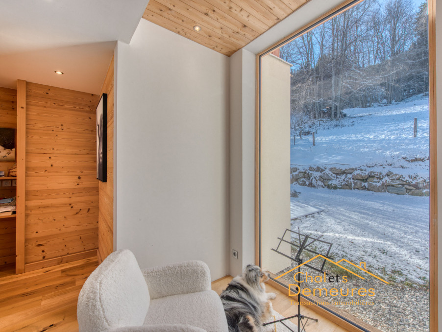 Saint Nicolas de Véroce, à quelques pas du départ des pistes de ski des Chattrix, au calme, bénéficiant d'une vue panoramique sur les massifs à vous couper le souffle, Magnifique chalet de 2019 alliant traditionnel et contemporain aux volumes généreux d'environ 300 m2 habitables baignés de lumière, cuisine ouverte sur un vaste séjour double avec coin cheminée, 5 chambres plus un appartement T3 communiquant en rez-de-chaussée entièrement équipée pouvant générer un bon rendement locatif et offrant 2 chambres supplémentaires, Buanderie, local à ski, garage et Carport édifié sur 1426 m2 de terrain. Plus d'informations.